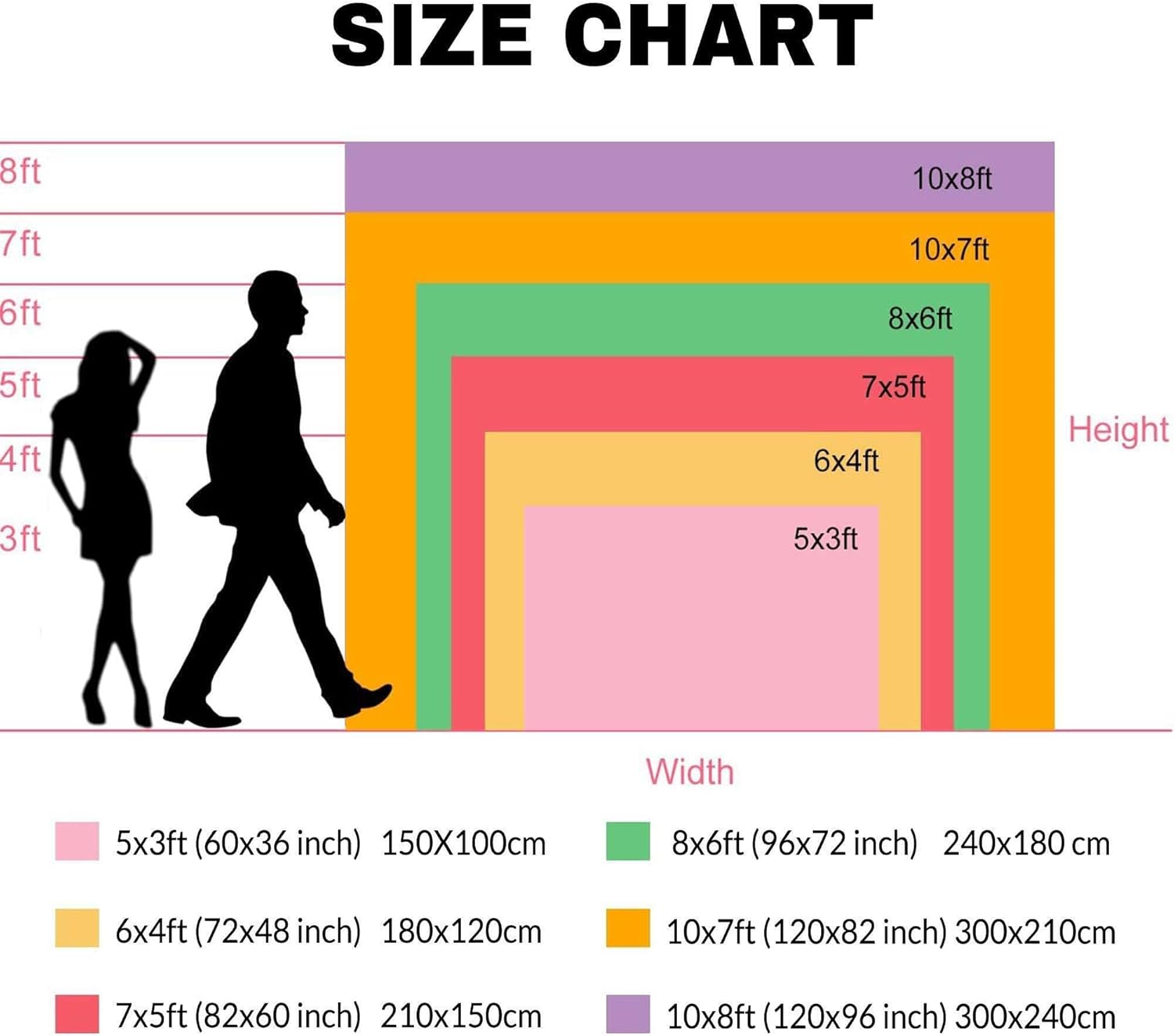 Multiple Size Options: Available in several sizes including 5X3ft, 6X4ft, 7X5ft, 8X6ft, 9X6ft, and 10X8ft, and so on.