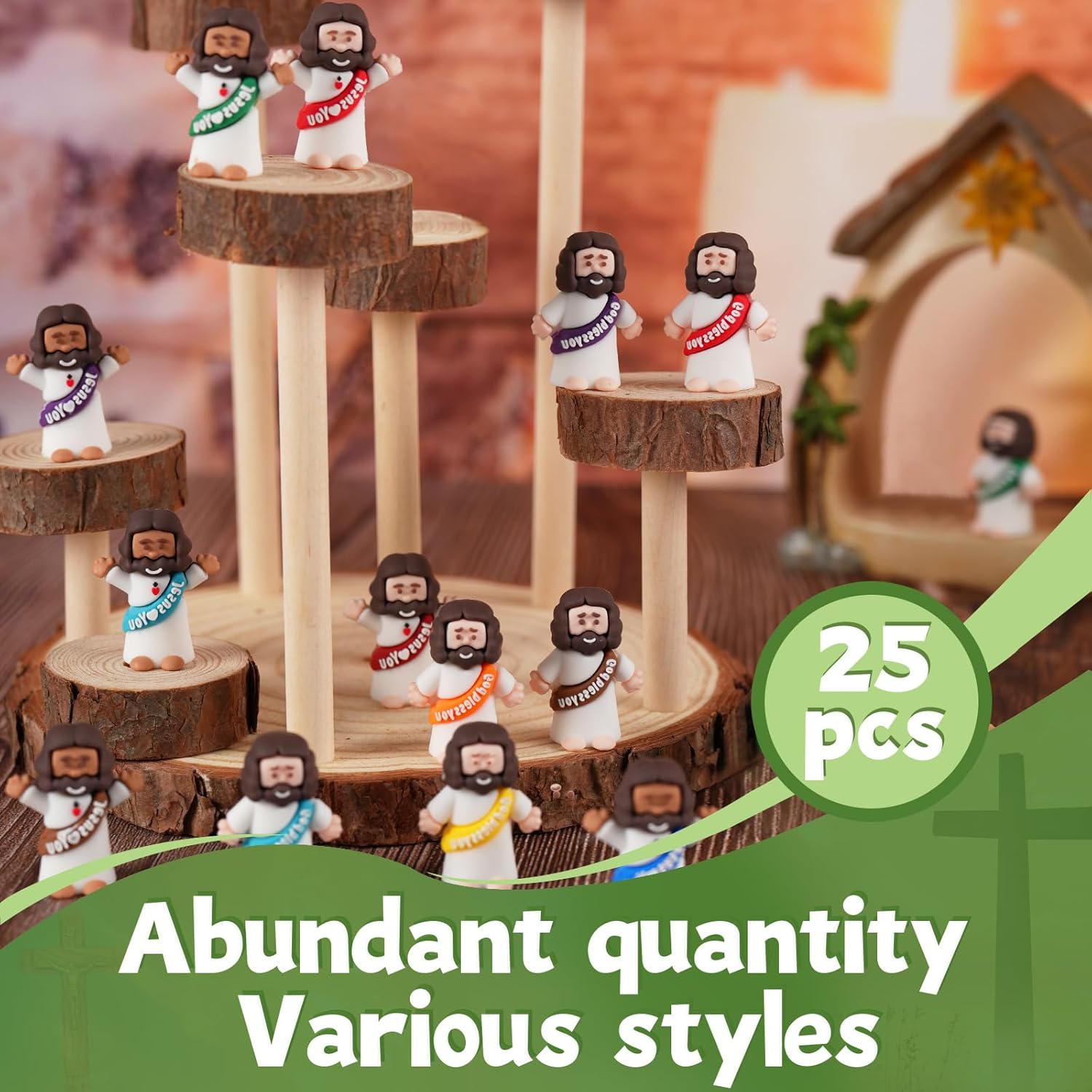 Package Includes: You will receive 25 mini jesus figures in 10 different colors, featuring 2 designs and 2 facial skin tones (light and dark). Each tiny jesus measures approximately 1.38×1 inches. With ample quantity and variety, little jesus figures are perfect for your daily use, replacement, and sharing with family and friends
