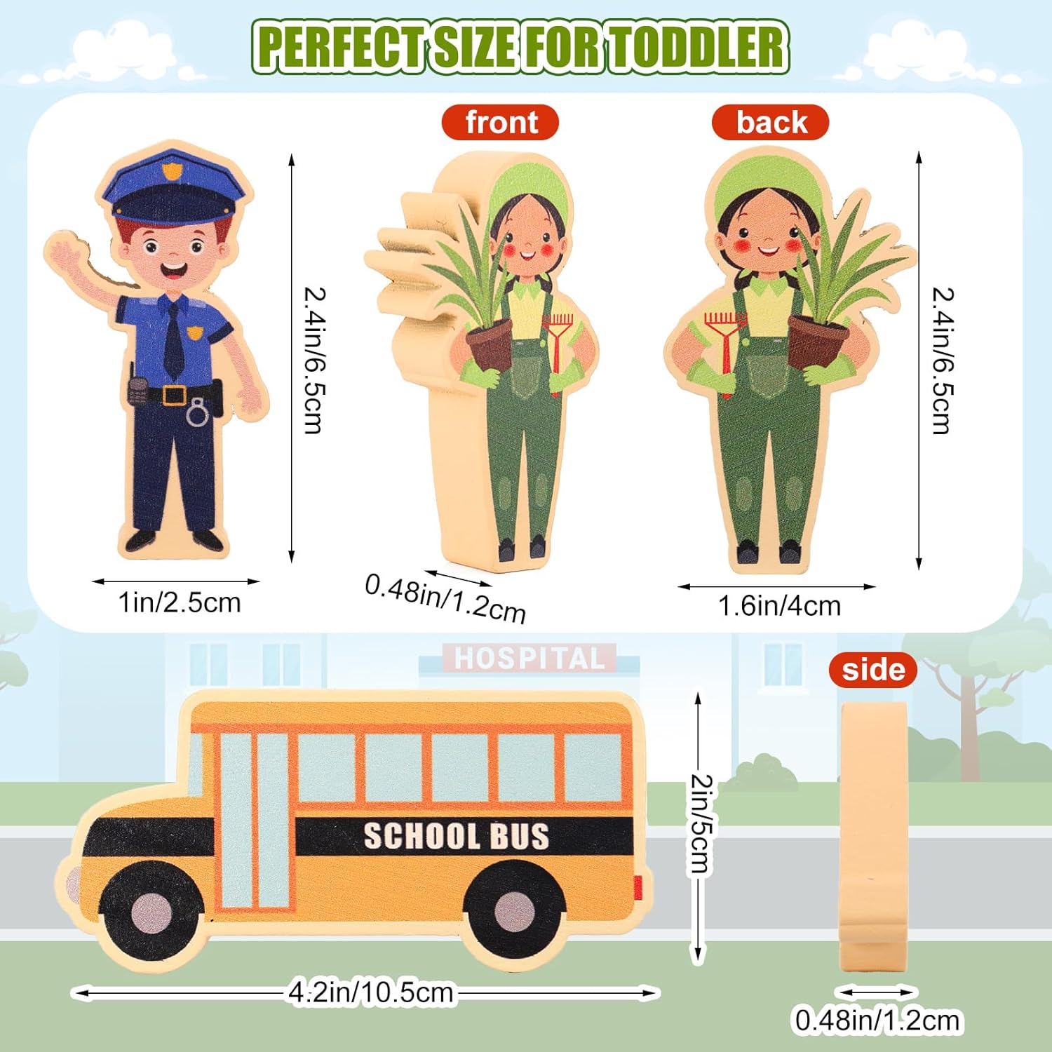 Our wooden occupation figures are made of high quality wood material, the edges of the wood are polished smooth, durable, and not easily broken; Parents can ensure that their children are immersed in this pretend world to play.