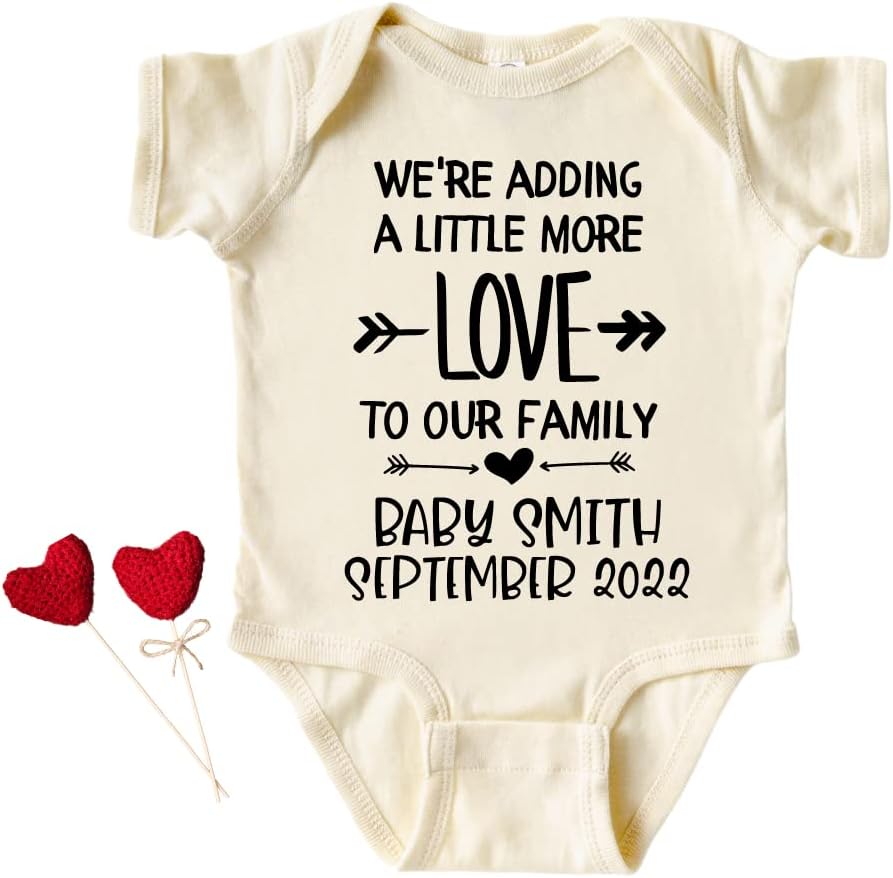 Welcome to Salt & Light Btq! ★ OurValentines Baby Announcement Bodysuits are 100% cotton. Made with love in Texas, USA. The perfect way to announce your pregnancy this Valentine’s Day 2022. ★ Our Valentines Baby Announcement Onesie is ideal to announce pregnancy to husband, grandparents, family and friends. Surprise the new dad, grandma and grandpa with this cute pregnancy reveal: our little Christmas Miracle is on the way!! ★ Our surprise baby bodysuit also can be used as a pregnancy announcement for grandparents or as a surprise baby announcement to family this Valentines Day 2022. This makes the sweetest new grandma & new grandpa gift to announce you are adding more love to the family. ★ Best Gift Ever: Cupid is not the only stealing our hearts! Tell the world the best news with this creative way to reveal the news to grandparents, Daddy, Friends, Family and Social Media that there is a Little Valentine In 2022. ★ Our newborn baby clothes are designed with love for a sweet and funny pregnancy announcement for the new dad and/or grandparents, thoughtful gifts for new parents and also for baby shower gifts. Surprise Pregnancy Announcement for Grandparents, Littlest Valentine Baby Announcement Onesie, Valentine’s Day Pregnancy Announcement Onesie | Professionally created apparel by Salt and Light Btq. –> PS: All the props used in the pictures are for pictures purposes only. Package will contain baby bodysuit only.