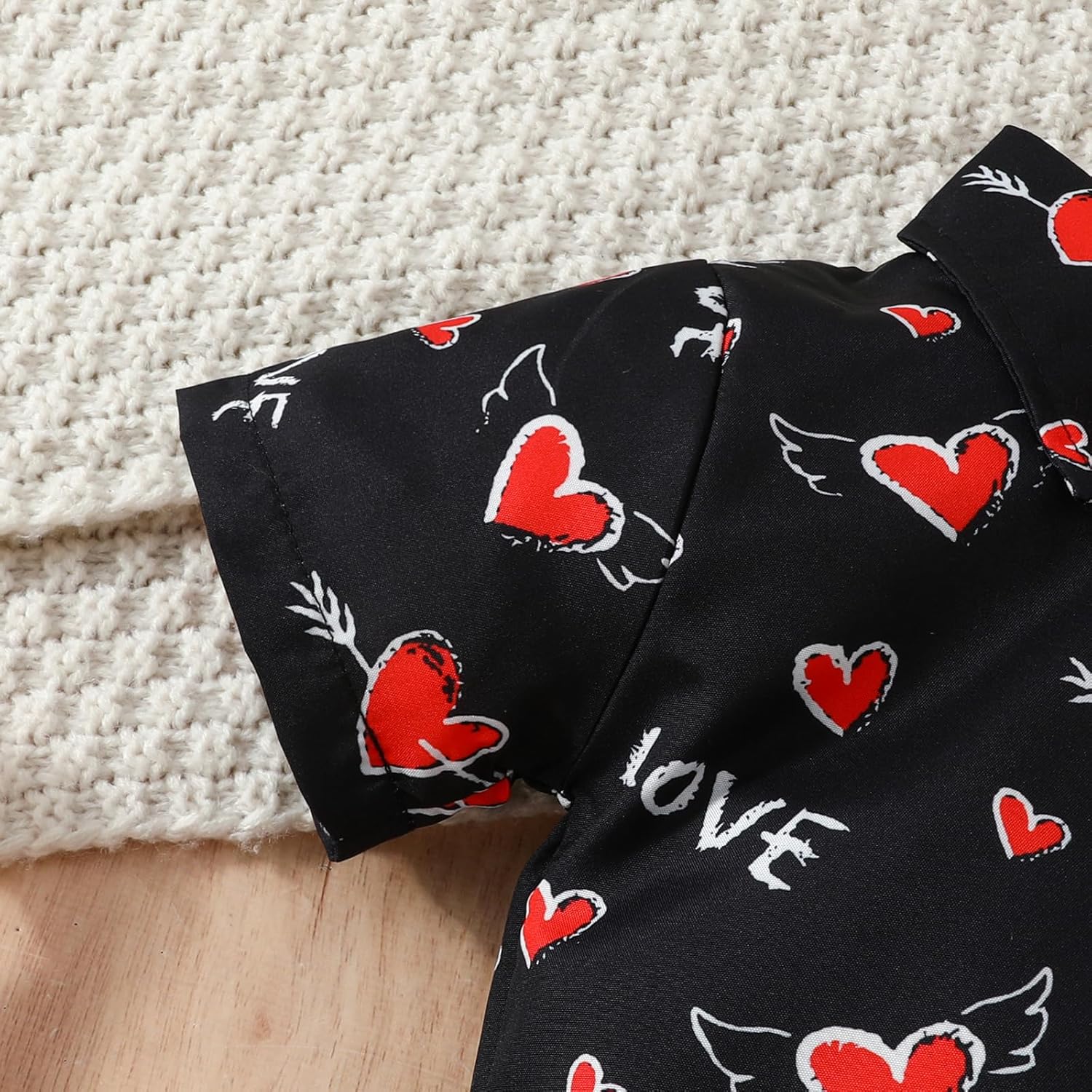 Toddler Infant Baby Boys Dress Shirts Short Sleeve Rompers Bodysuits One Piece Outfits Clothes Jumpsuits Little Gentleman Outfits with bowtie, perfect for daily wear or photoshooting or brother matching outfits,