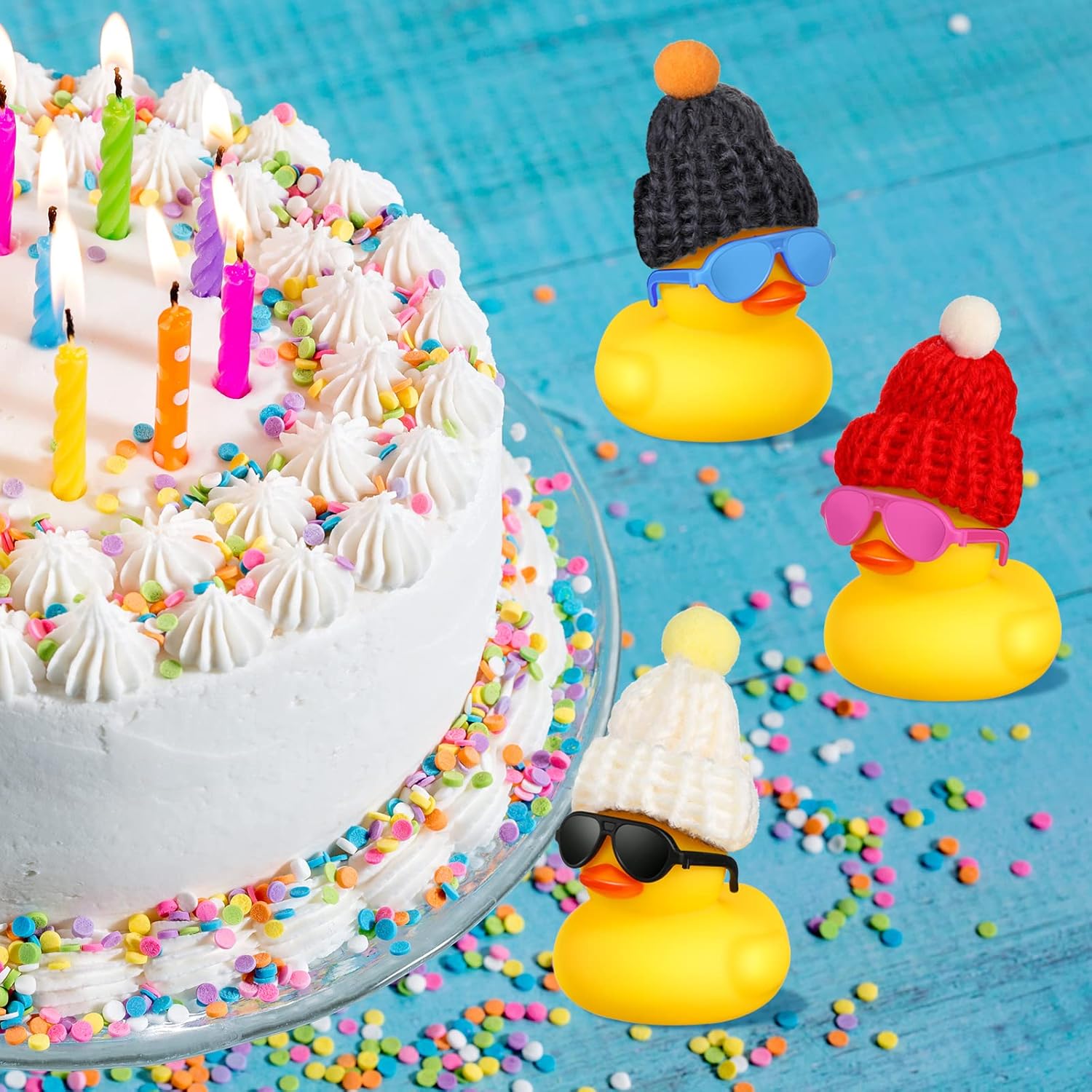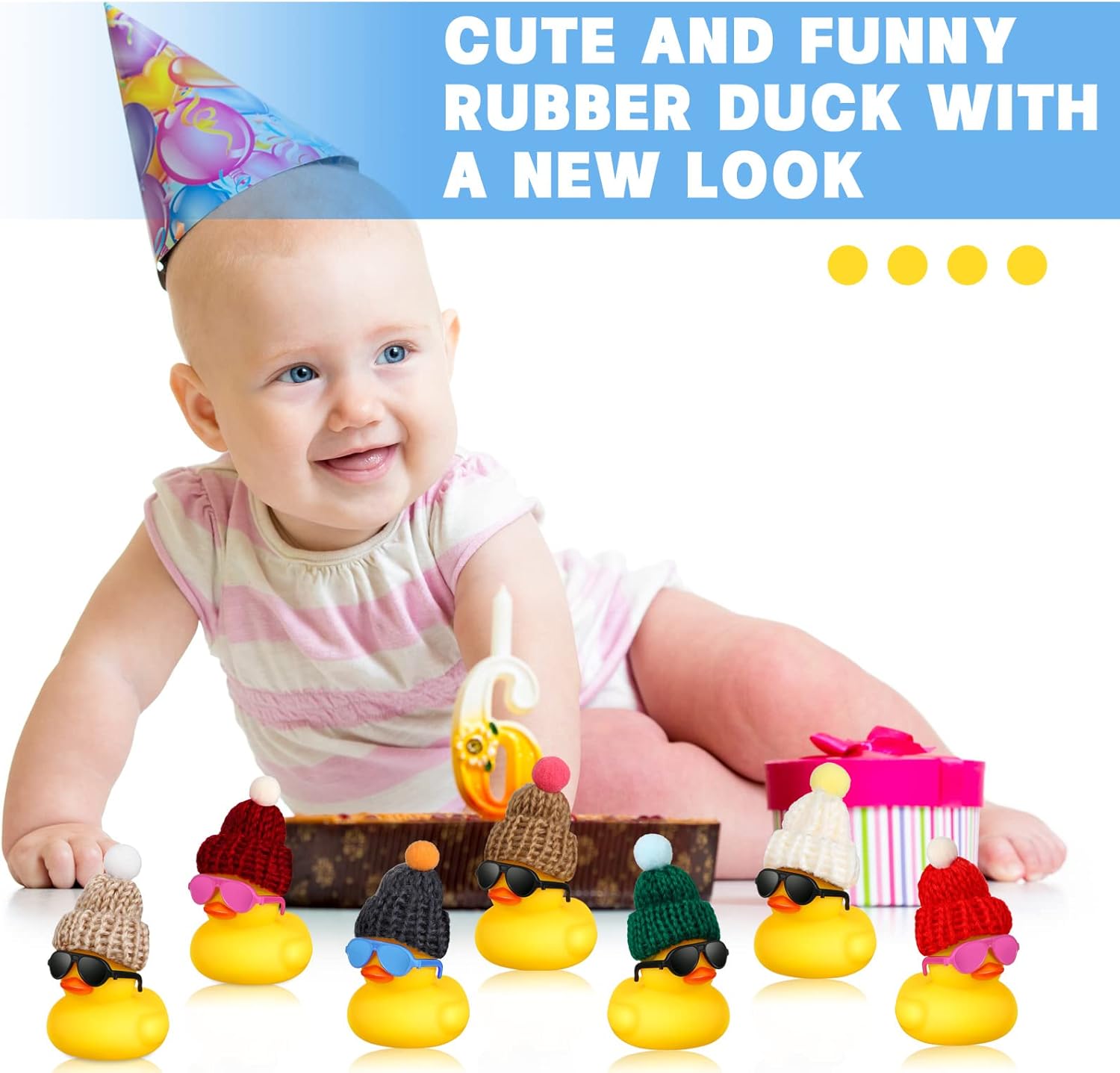 Nice Combination: you can receive 12 mini rubber ducks, each measuring 3 x 2 inches, 12 mini sunglasses and 12 hats, the ducks, hats and sunglasses are separate, exquisite and lovely, especially designed for little hands, comfortable to hold and fun to play