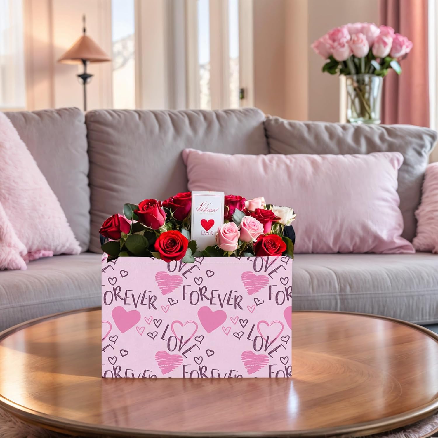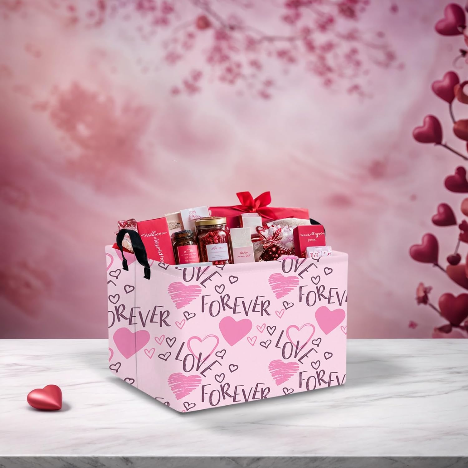 Heart shaped gift basket storage basket – perfect for storing gifts, clothes, children’s toys, books, etc. in bedrooms, children’s rooms, baby rooms, daycare centers, laundry rooms, offices, and university dormitories. This is a gift basket with printed patterns, including laundry basket, baby basket, toy storage basket, closet storage basket, etc. Our storage basket will be your trusted assistant. With our storage basket, you will have a fixed place to store items neatly and orderly, allowing your family and living space to be organized, efficient, comfortable, and relaxed. The basket is made of cotton fabric with PE waterproof coating. The size of the basket when opened for use is 14.9L “x10.2” W x 9.8 “H inches. It is suitable for storing various clothing, toys, and other miscellaneous items. Packaging quantity: 1 storage basket. Note 1. The basket is compressed and may wrinkle during long-distance transportation. It will recover after a period of use. 2. Please allow manual measurement deviation of 0.3-1.2. 3. Due to lighting effects, monitor brightness, and other reasons, there may be slight differences in color between the photo and the actual item. Sincerely hope you can understand! 8. Only wipe clean, do not machine wash, use abrasive detergent.