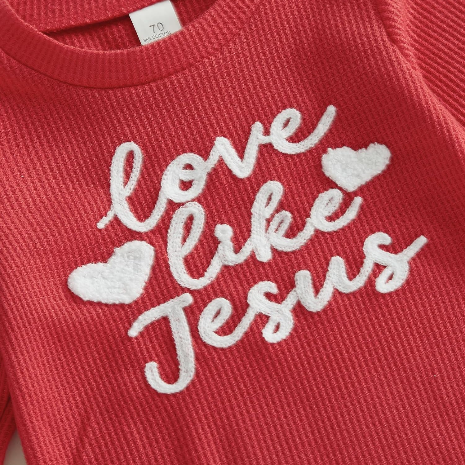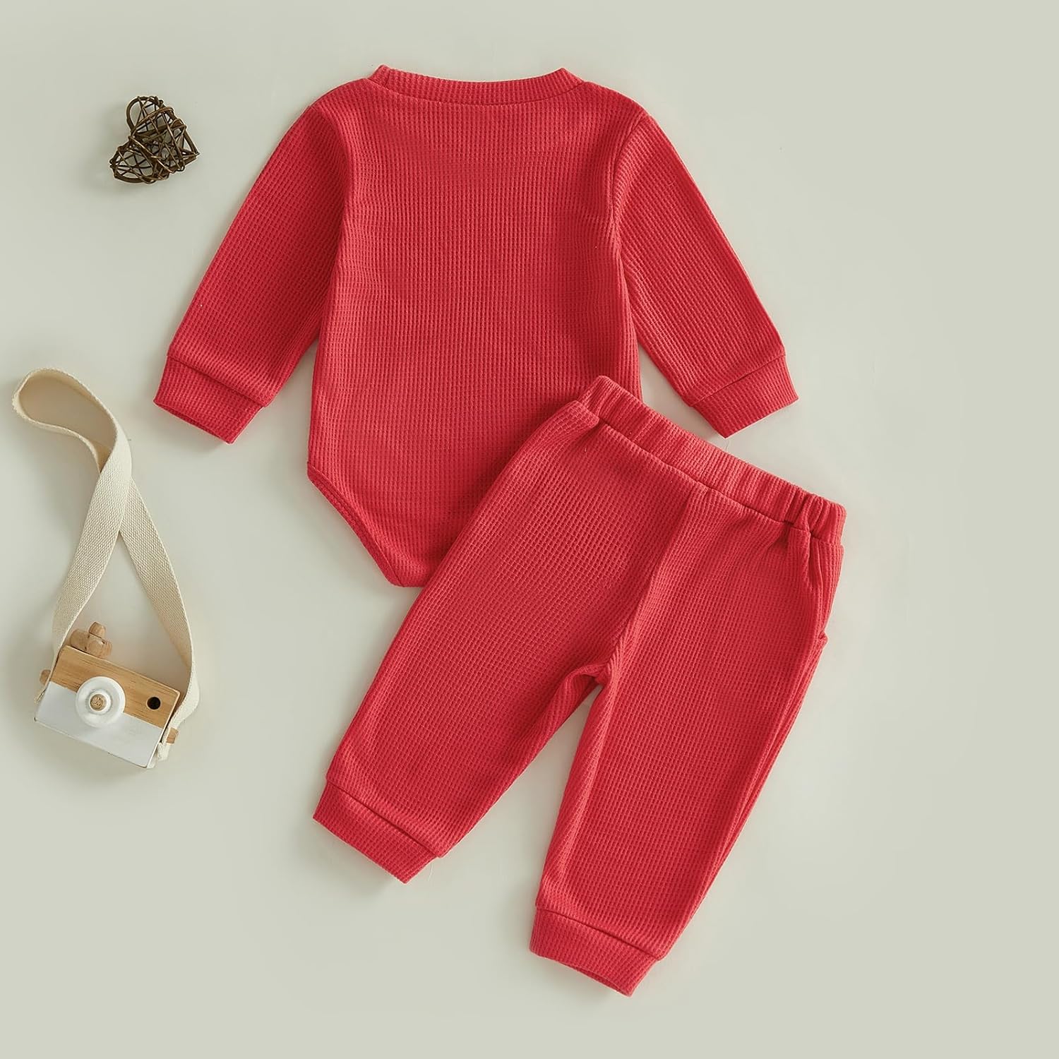 Baby Valentines Day Outfit Infant Boy Girl My 1st Valentine’s Day Embroidered Waffle Baby Sweatshirt Romper Pants Set