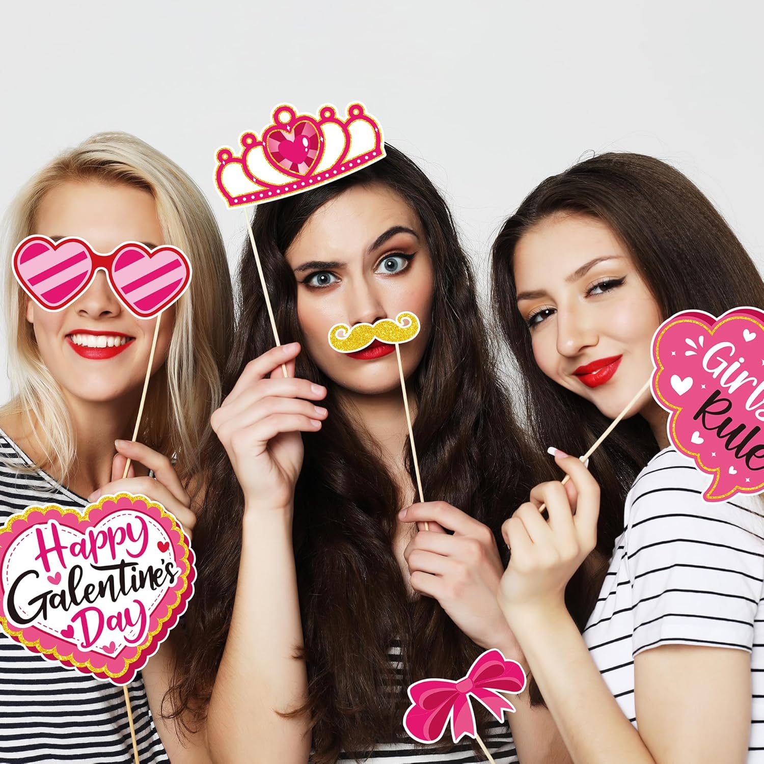 33 Pcs Photo Props: This pink-themed photo prop set is specially designed for Galentine’s Day, featuring up to 33 exquisite props, each full of creativity and fun! From cute bows and sparkling crowns to stylish lipsticks and diamonds, each prop allows you and your girlfriends to unleash endless creativity during the photoshoot, creating photos full of personality and humor. Whether it’s a party photo op or a group selfie with friends, every shot will be unique and unforgettable