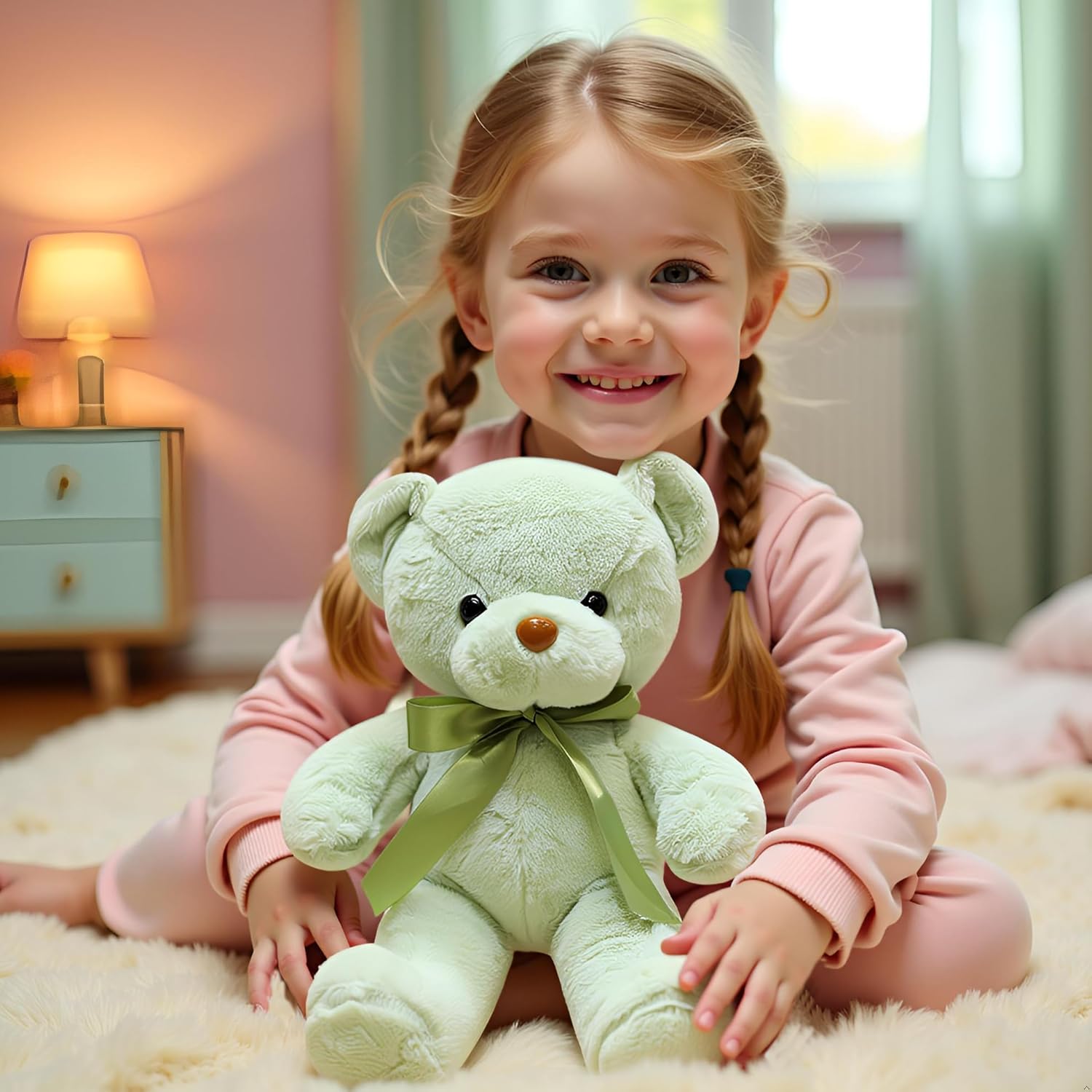 🍈Small Teddy Bear: 13.4inch soft green teddy bear stuffed animal is very suitable to hug, snuggle and carry for kid