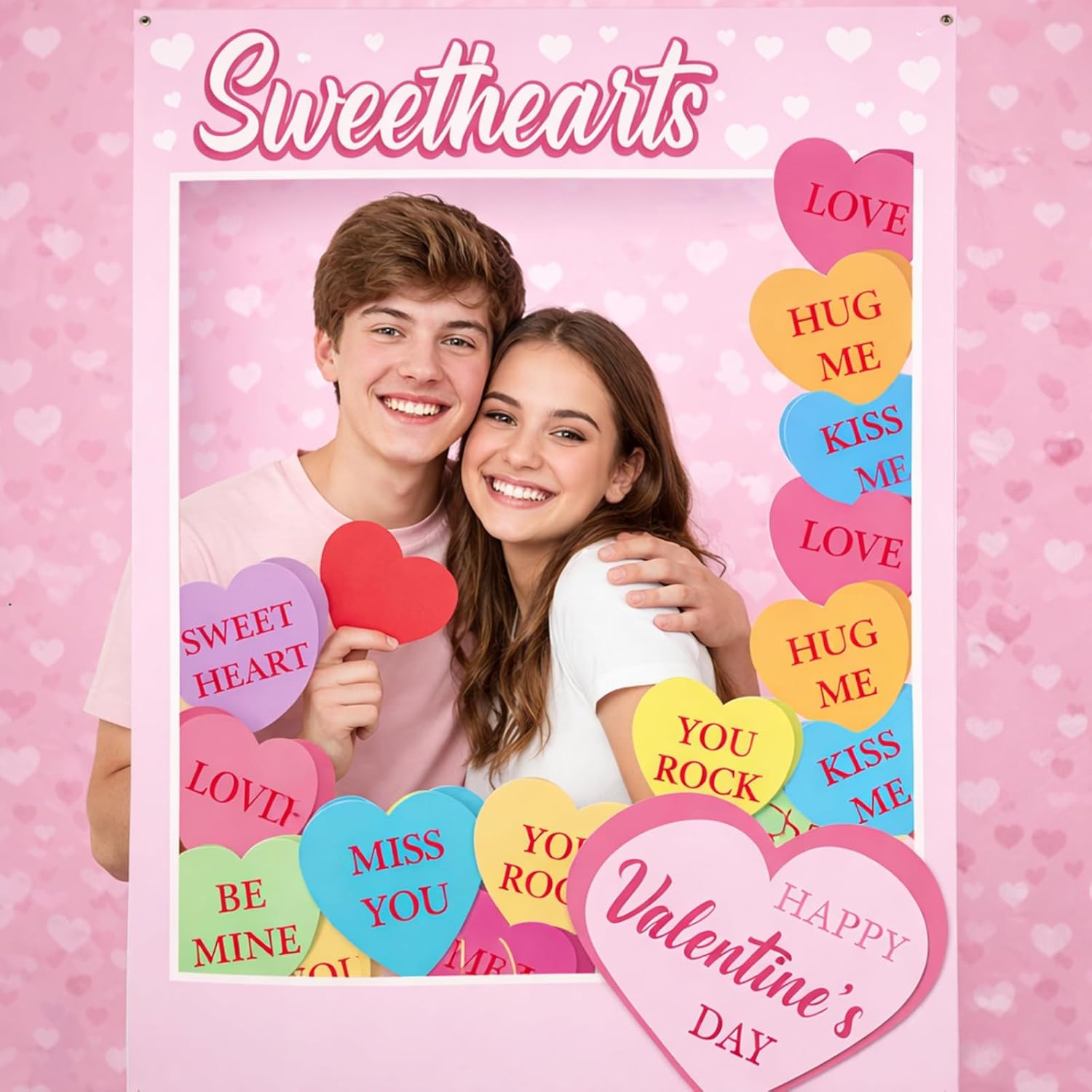 Themed Valentine’s Design: specifically designed as Valentines conversation hearts photo props frame and pastel conversation hearts photo prop frame for Valentine’s day, it integrates classic heart elements and soft pink tones symbolizing love and sweetness; Every detail aligns with Valentine’s aesthetics, turning this Valentine’s day conversation hearts photo props frame into a romantic centerpiece that boosts festive charm