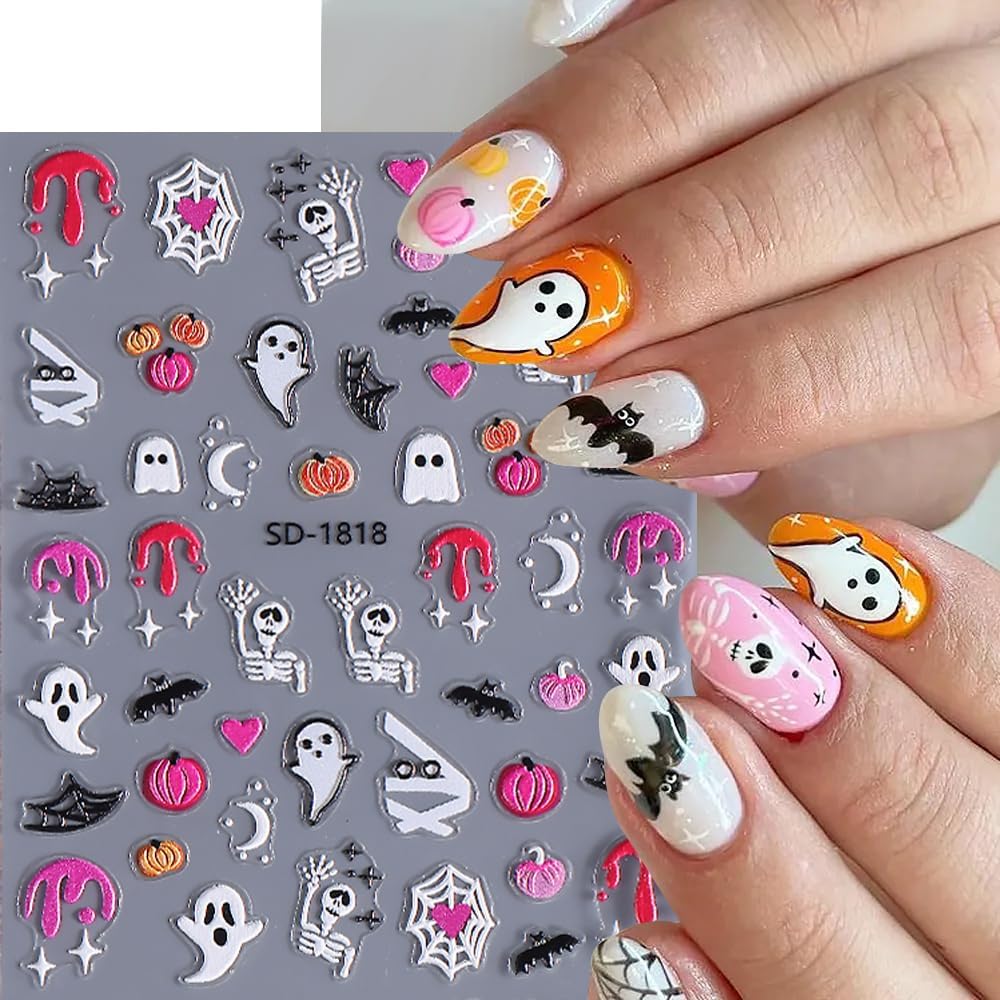 Easy to Use: Just use tweezers to peel off nail self-adhesive stickers and stick ghost nail decals on your nails. You can also use top coat to cover to make the beautiful stickers last longer