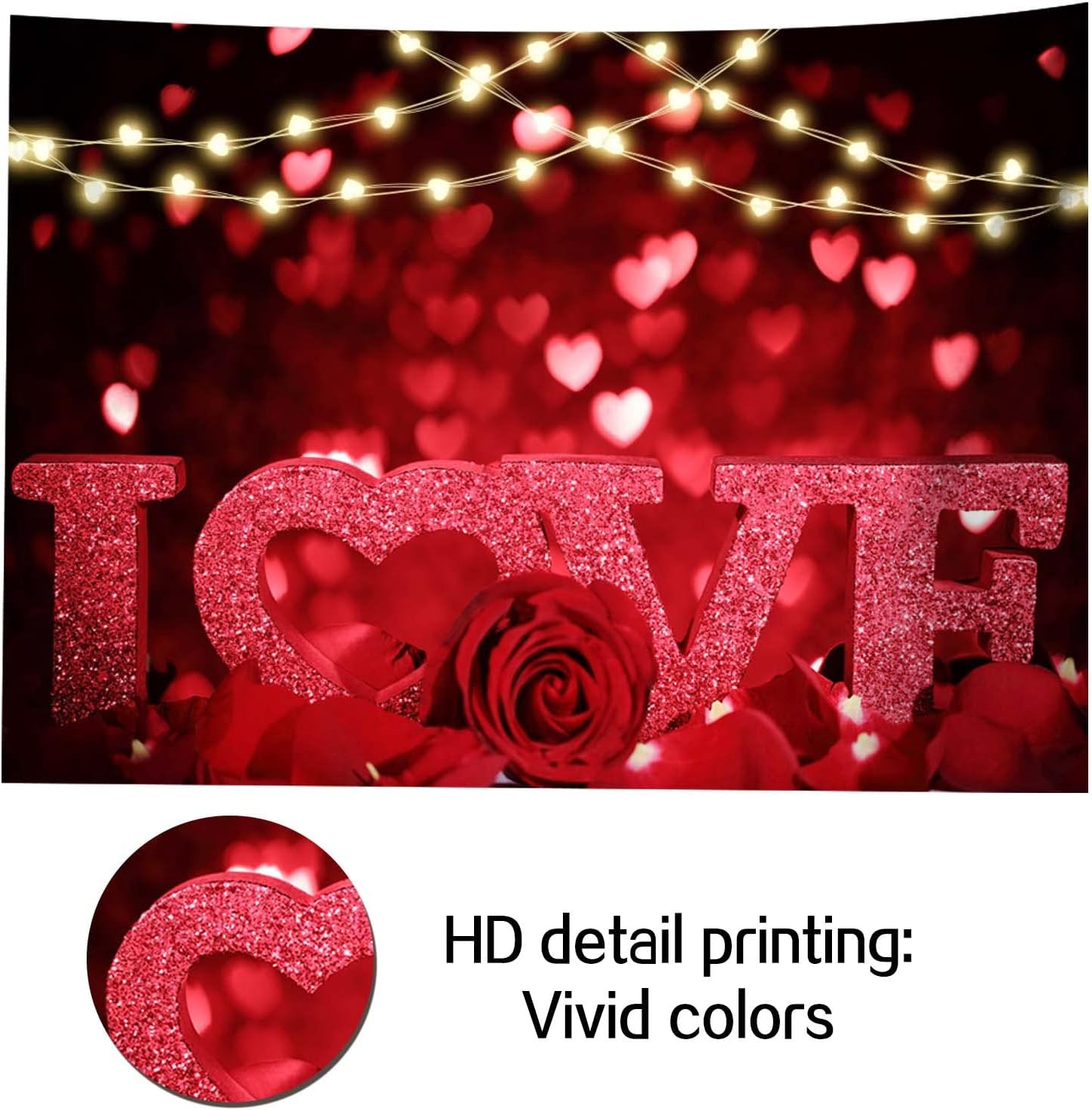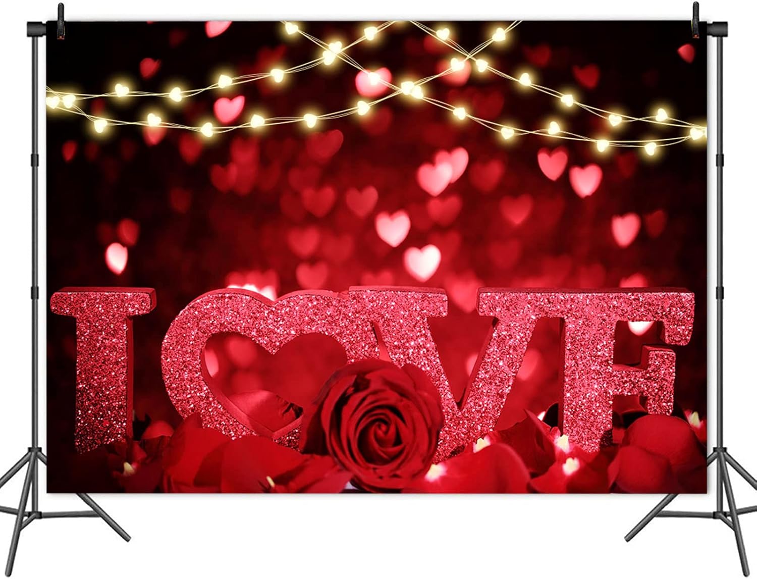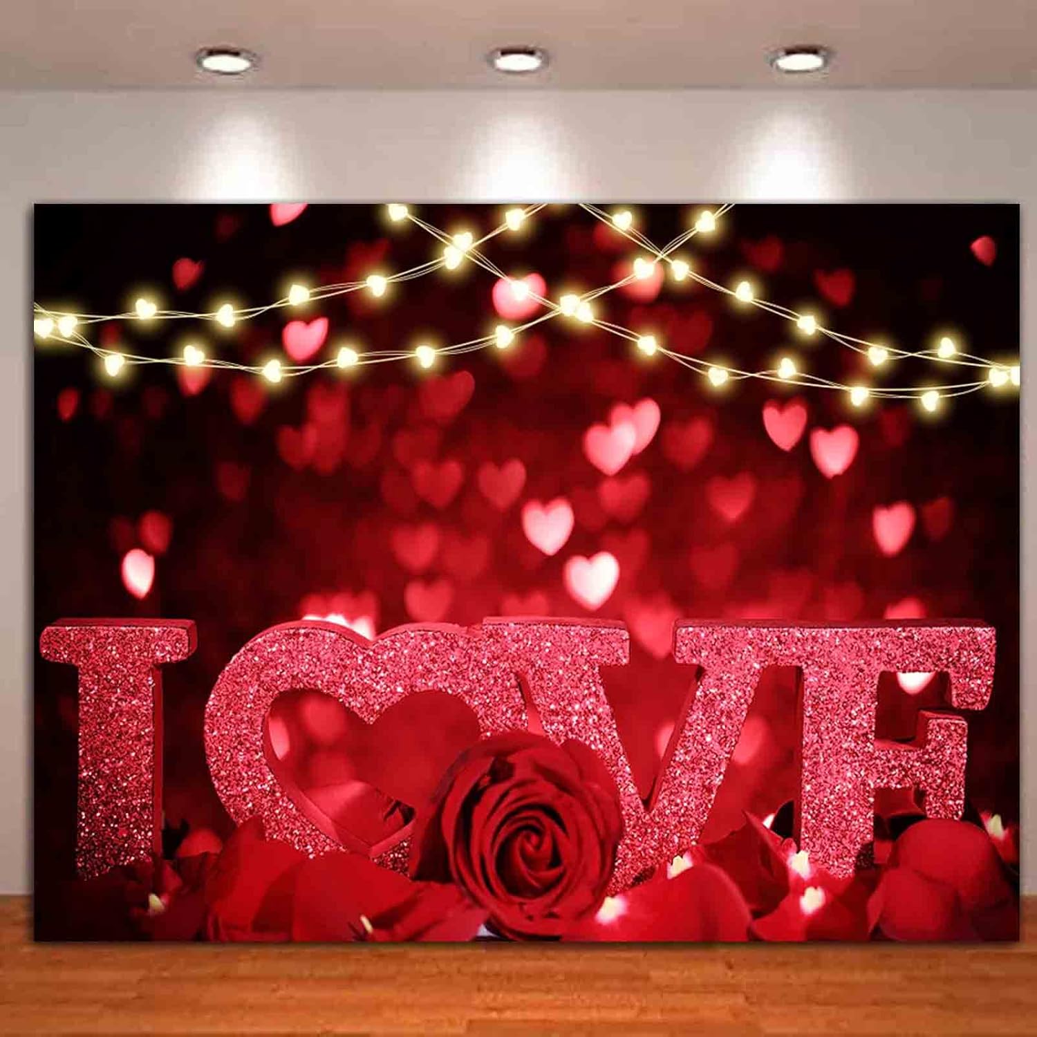 HQM Rose Bokeh Glitter Red Love Heart Theme Photo Backgrounds 7x5ft Fabric Wedding Bride Shower Mother’s Day Valentine’s Day Anniversary Party Photography Backdrops Couple Studio Shoot Booth Props