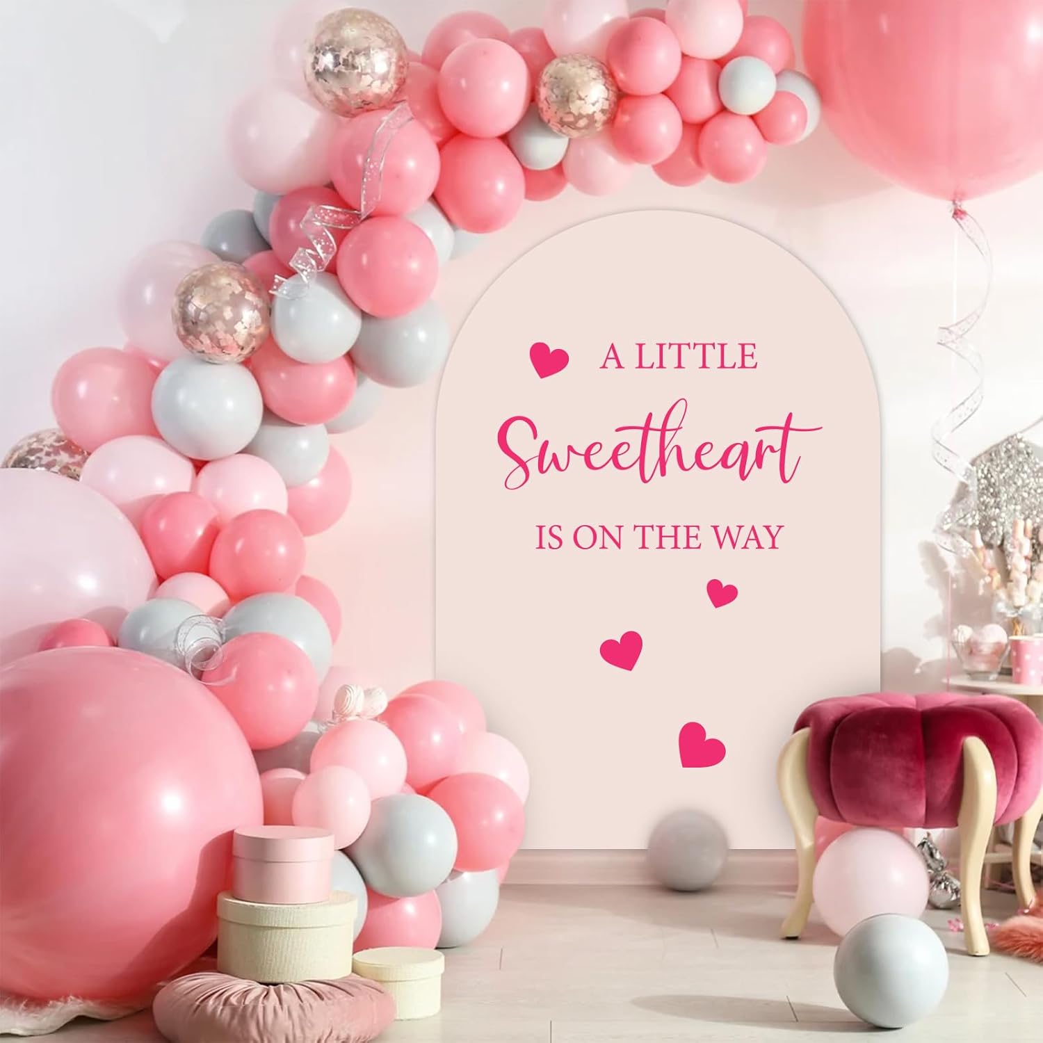 ROMANTIC DESIGN: Our wall sticker featuring Valentine’s Day gender reveal theme, designed with pink hearts and letters A Little Sweetheart Is On The Way, romantic and elegant, will be a nice addition to your balloon arch backdrop