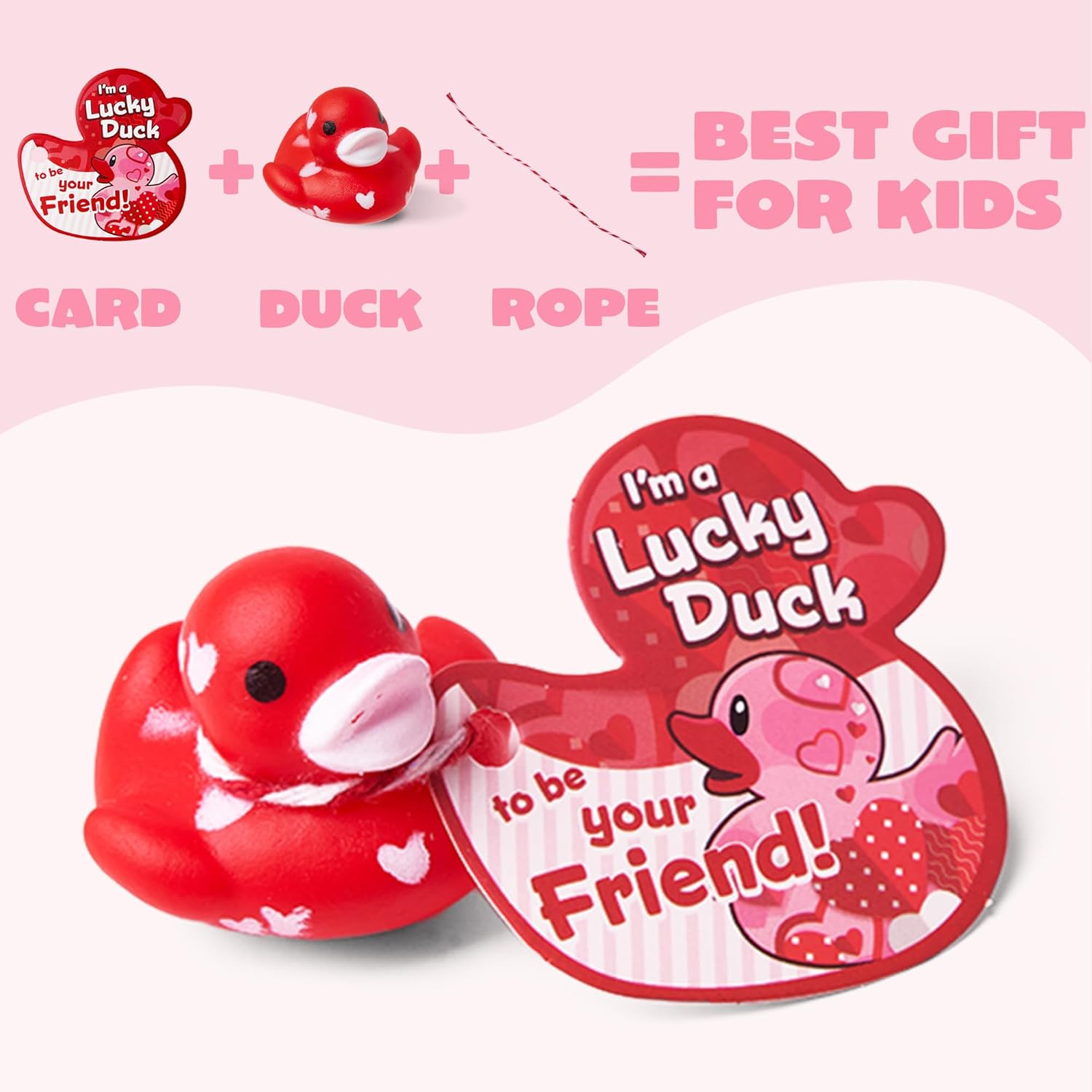 Ideal Favor & Gift. The valentine’s day gift card comes with a rope for fixing on the duck, sturdy and reusable.You can write your blessings on the card.Great for gift options for kids’ school classroom prizes, gift exchange, love notes and more!