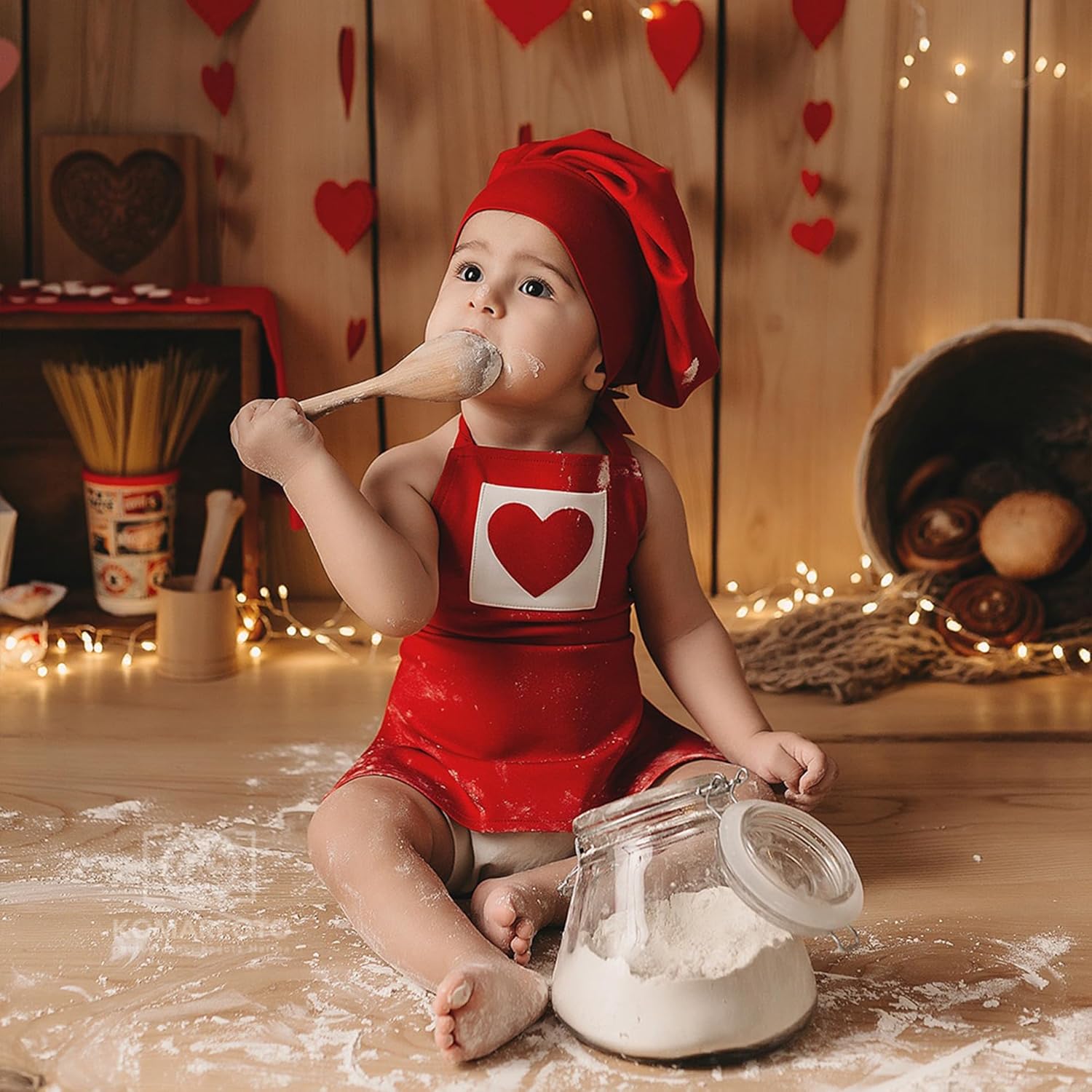 Contains a red love pocket apron and a red chef’s hat.