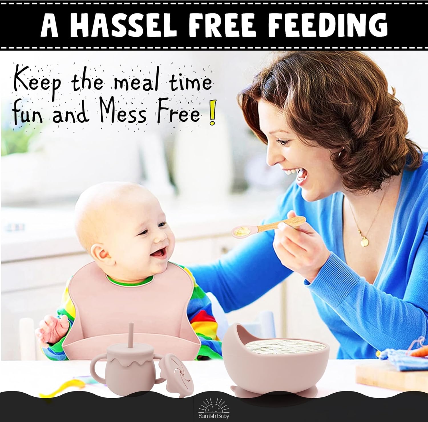 MESS-FREE – Our bowl and plate are suctioned to stay in place and prevent spill and messes. Our adjustable bib features deeper pockets than regular bibs making it perfect for catching food spills. Our feeding set is dishwasher safe making cleanup a breese.