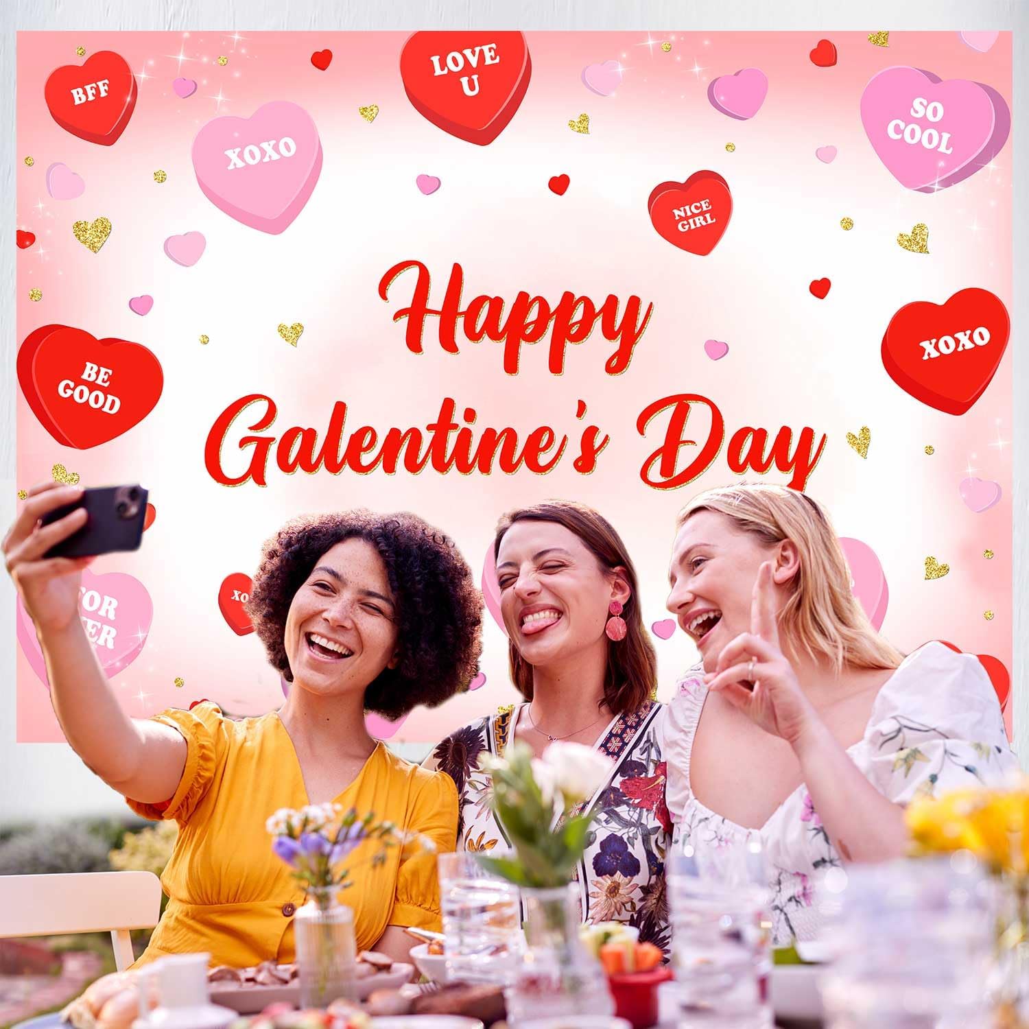 Material: Our galentines day backdrop is made of thin fabric cloth, tear resistant, not easy to damage, light, easy to carry, color can be kept for a long time after the party is over