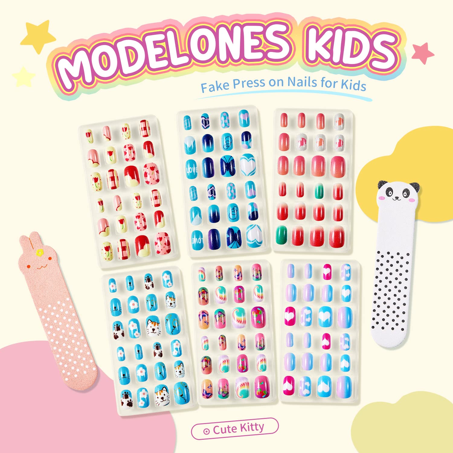【Safety Nails for Kids】Modelones kids press-on nails are made with non-toxic and BPA-free high-quality ABS material, which is a kind of green-friendly environmental material, cosmetic grade, and kids-friendly, no harm to children’s fingernails and skin, durable and reusable