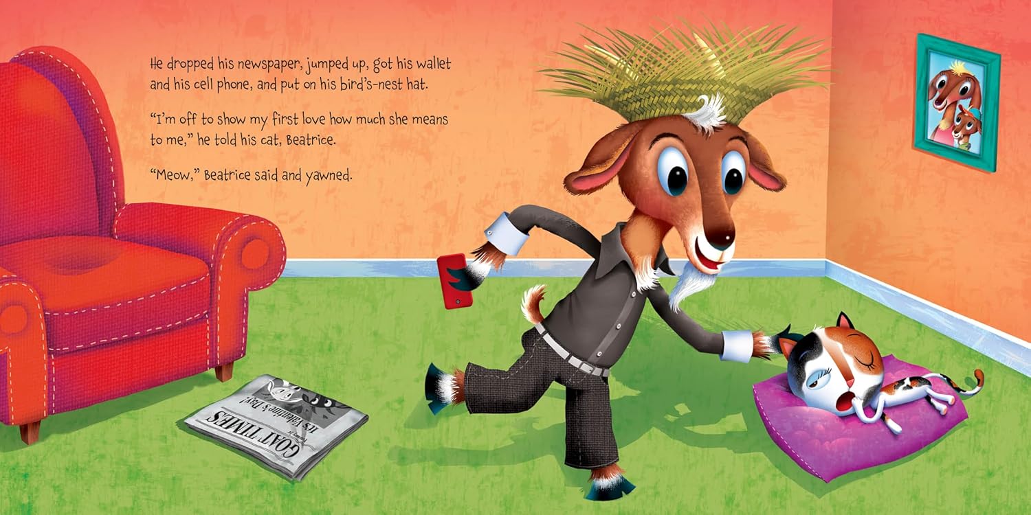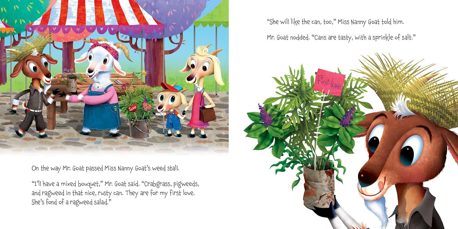 After reading in the newspaper that it’s Valentine’s Day, Mr. Goat sets out in search of very special gifts for his first love. But just what would a goat choose as the perfect gifts to show how he feels? Readers will be in for a surprise at Mr. Goat’s nontraditional selections. From acclaimed children’s author Eve Bunting comes a sweet holiday tale sure to warm hearts on Valentine’s Day and every day of the year.