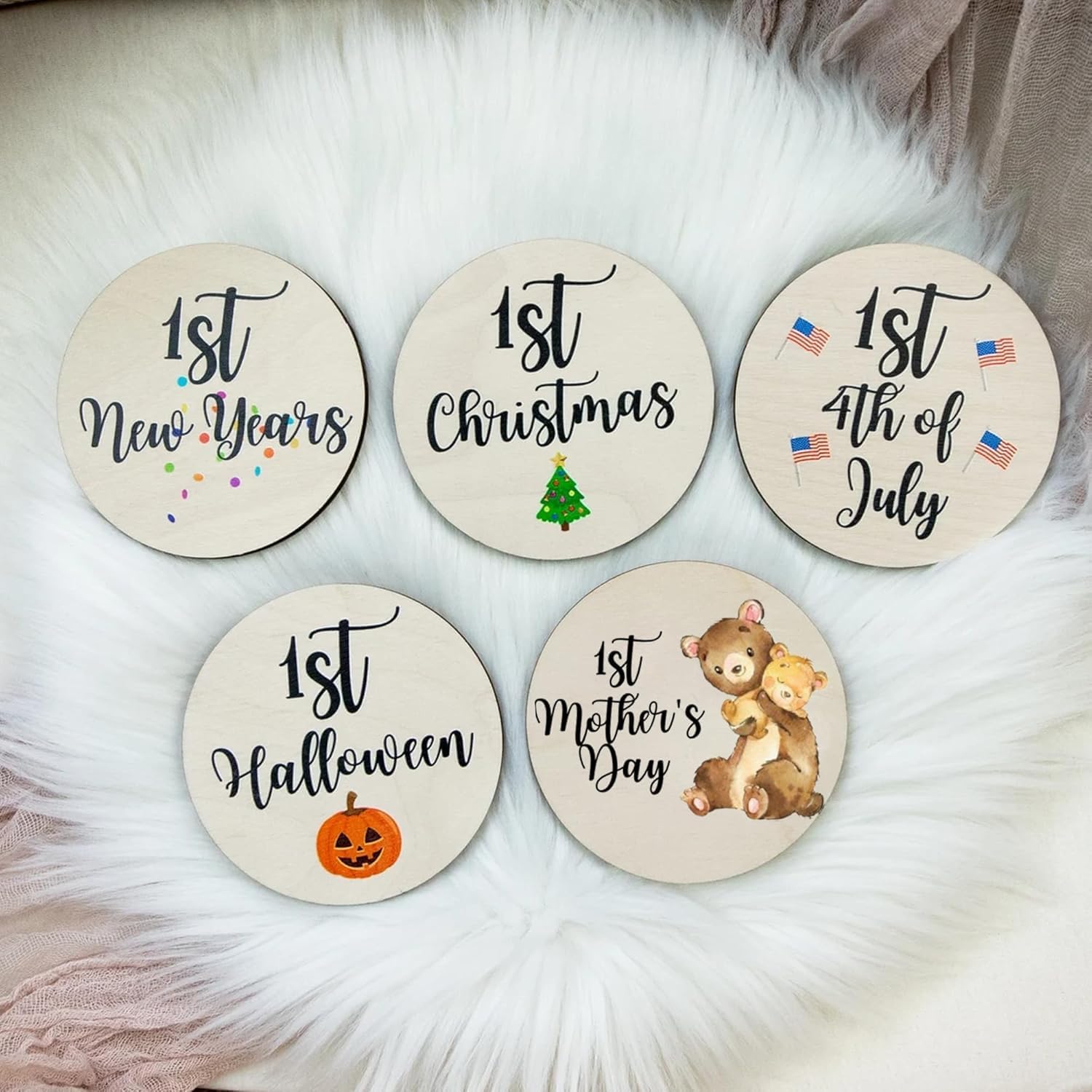 My First Holiday Milestone Cards, Baby Milestone Holiday Wood Discs Marker, Wood Milestone Card, Baby Milestones, Photo Prop(Holiday)