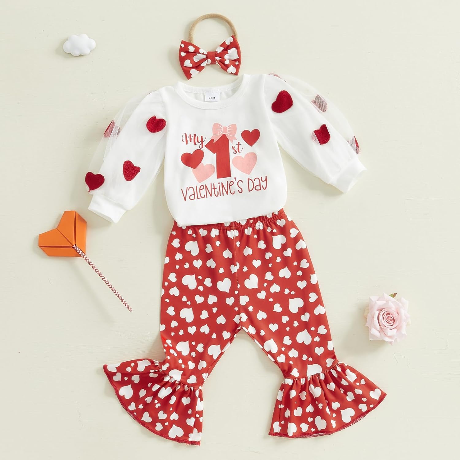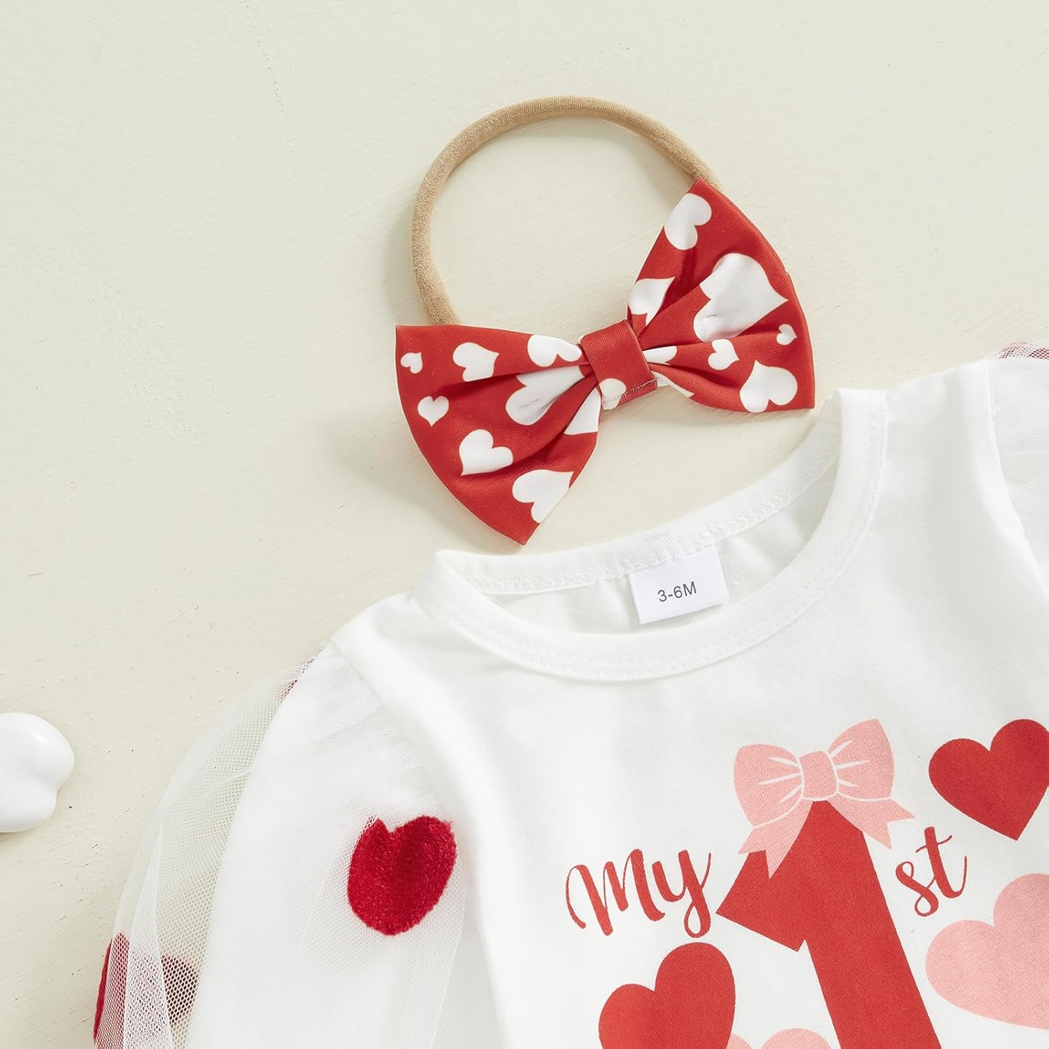 My First New Years Baby Girl Outfit Long Sleeve Romper Dot Print Print Bell Bottoms Headband Clothes