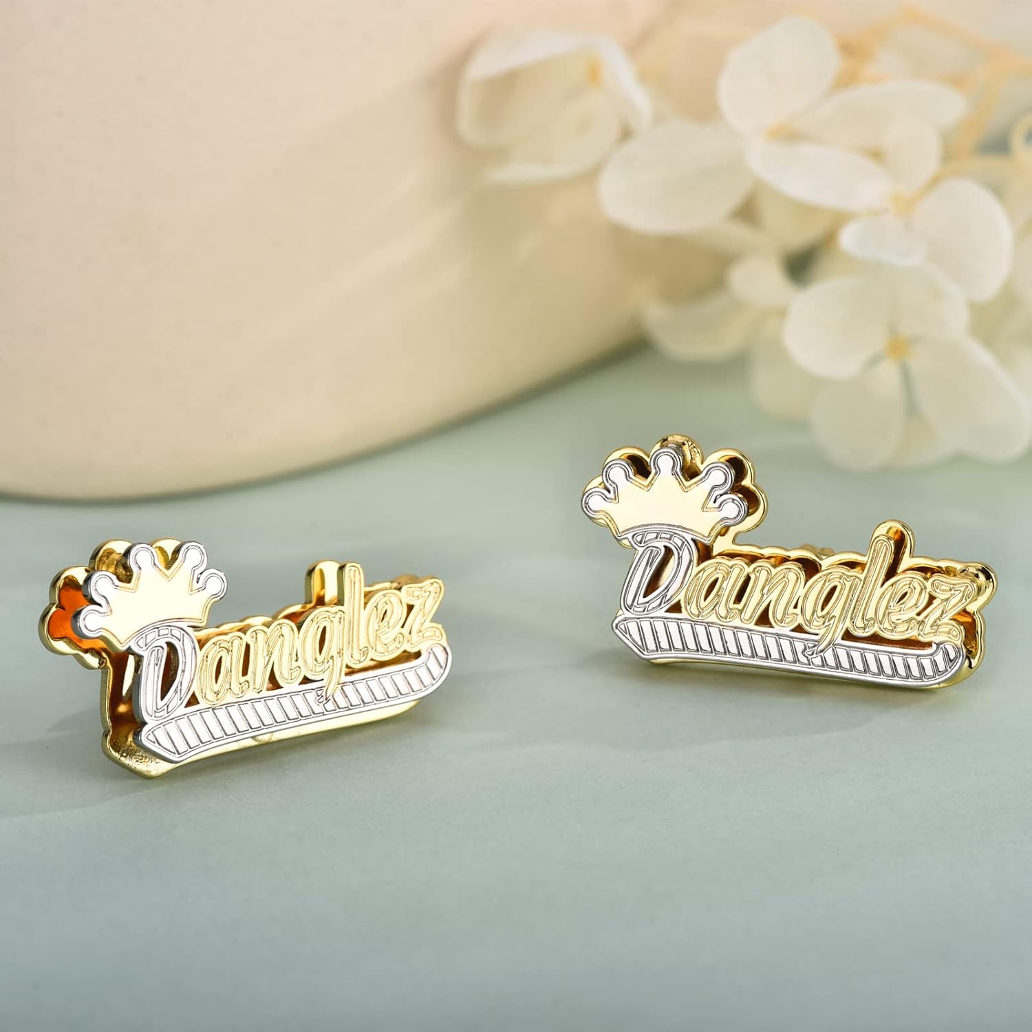 One of the standout features of our custom double-layer nameplate earrings is the personalization option. You can choose to have your favorite name, initials, or special symbols engraved, making the earrings uniquely yours. This personalized design will serve as your signature, showcasing your distinctive style to the world.