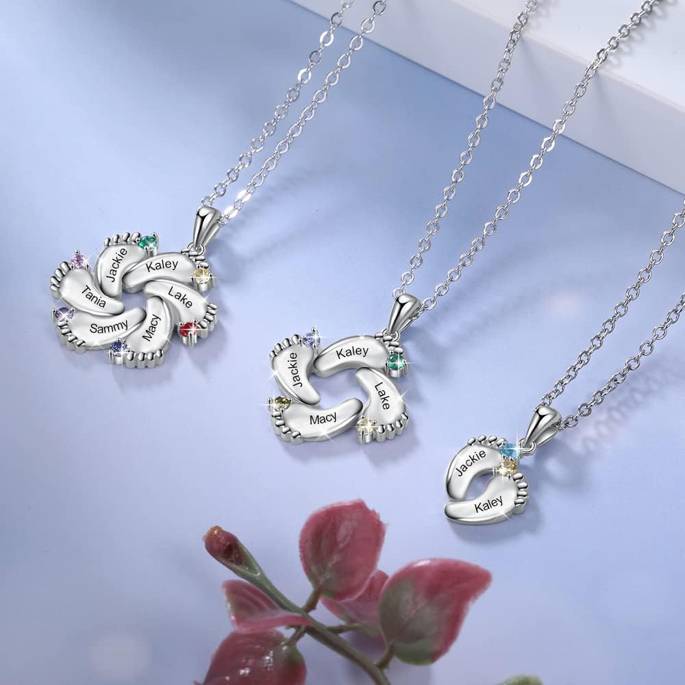 Customizable Feet Charms: Choose from 1-6 feet charms, each engraved with a name and birthstone to represent your cherished family members.