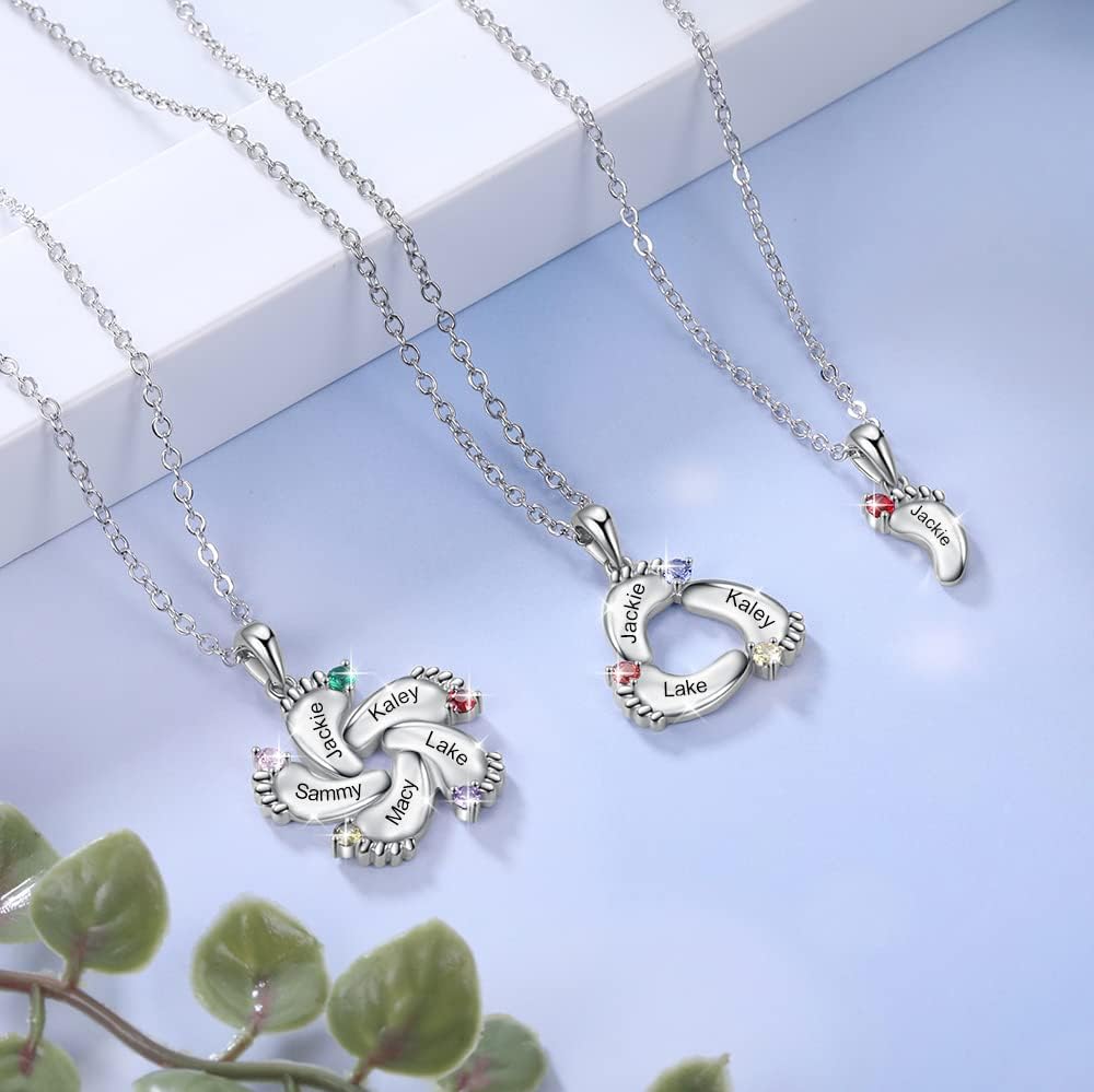 Celebrate the special bond between mother and family with our Personalized Birthstone Necklace for Mom. This custom necklace features 1-6 feet charms, each engraved with a unique name and adorned with a birthstone, making it a tender symbol of love, connection, and cherished memories. This heartfelt jewelry piece is not only beautiful but also emotionally meaningful, making it a perfect gift for Mother’s Day, Christmas, anniversaries, Valentine’s Day, or any occasion worth remembering.