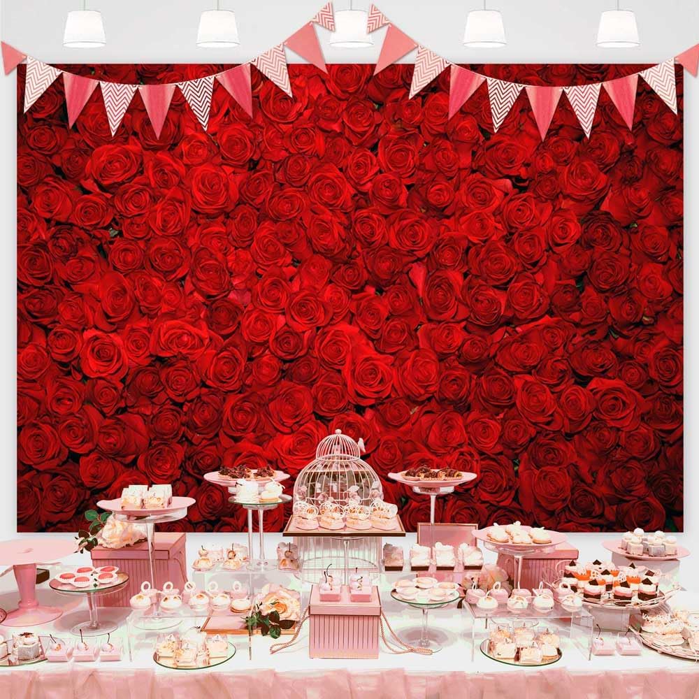 【Advantages】 — High definition computer printing, Exquisite hemming, durable material and adding gromments, Can be easily hang up by strings. This enchanting red rose backdrop can be a highlight of decoration for various party, Bright color and wonderful pattern design will bring the sweet and romantic atmosphere for the party.