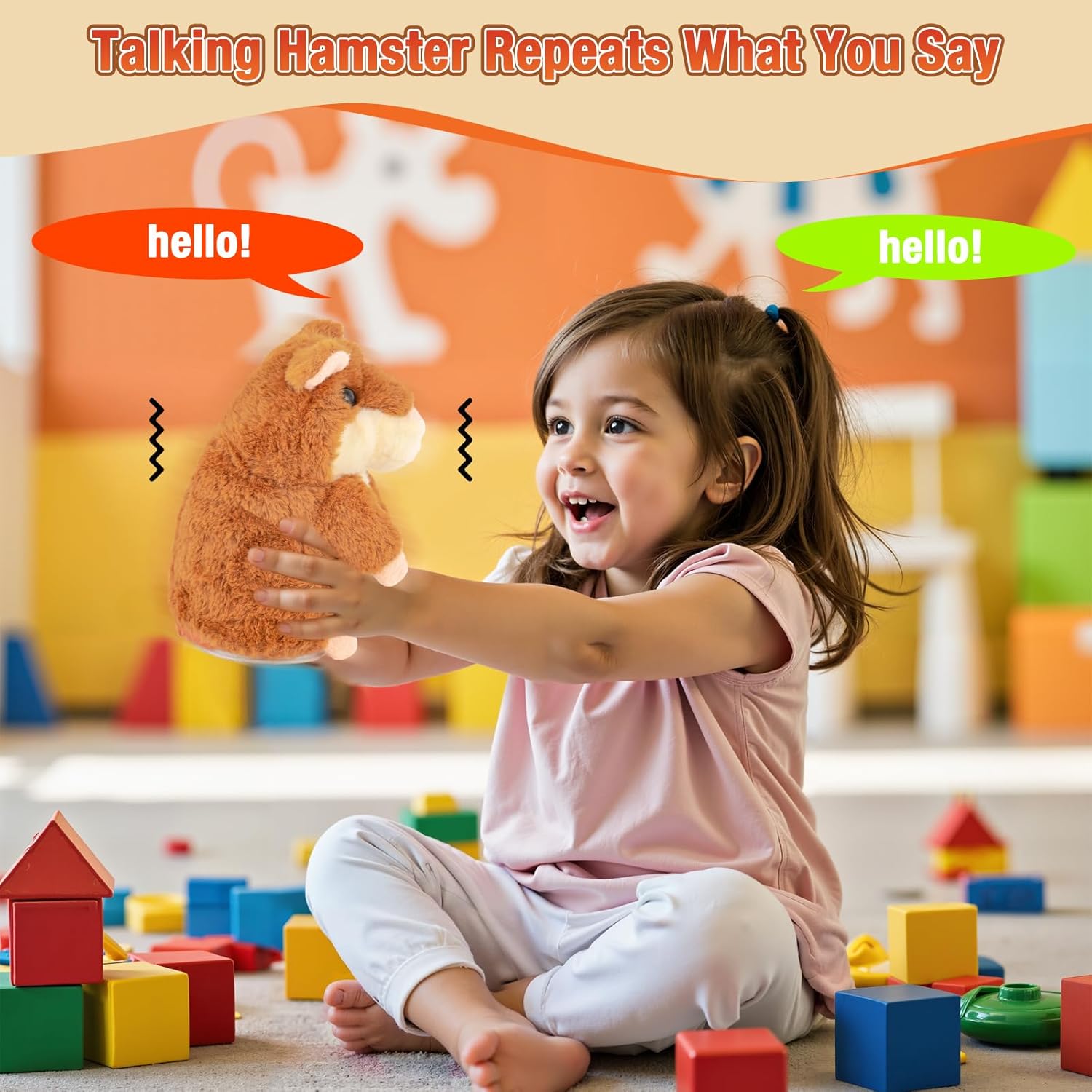 Talking Hamster, which can repeat what you say. Cute appearance can easily capture the hearts of kids. Encourage them talk more~
