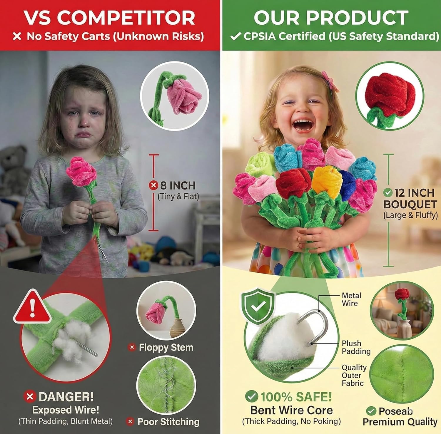 BRING EVERYDAY JOY WITH OUR BENDABLE STEM STITCH ROSE BOUQUET: Rose Flower Plush Toy Is Made For Easy Shaping Fun — Each Rose Features A Flexible Wire-core Stem That Bends And Holds Poses For Display, Great For Craft-time, Role Play, Photo Props, Or Quick Room Refresh Without The Mess, A Simple Way To Add Color Warmth And Happiness While Creating A Cozy Moment Of Connection And Parent-child Bonding