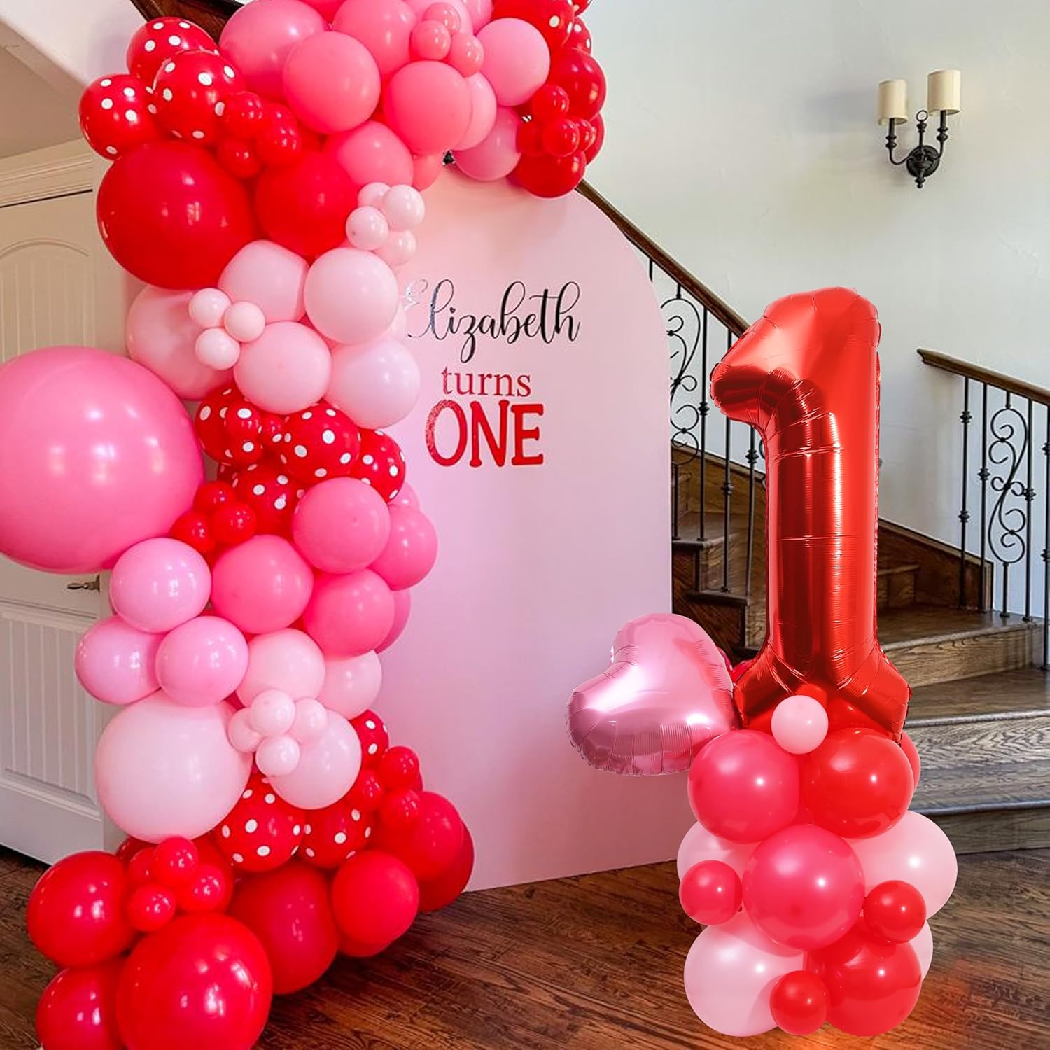 Valentine Baby First Birthday Balloon Kits- Heart 1st Birthday Balloon Decorations, Valentines Day One Milestone Birthday Party Sign, Love Day Balloon Tower, Red And Pink Heart Cake Smash Photo Props