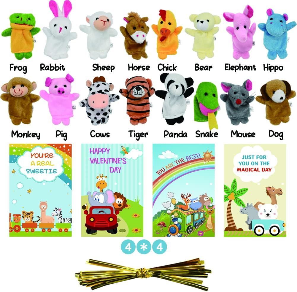 Special Value Package: You will receive 16 Valentine cards and 16 finger puppets. Vivid image, bright color, very easy to attract the attention of the baby.