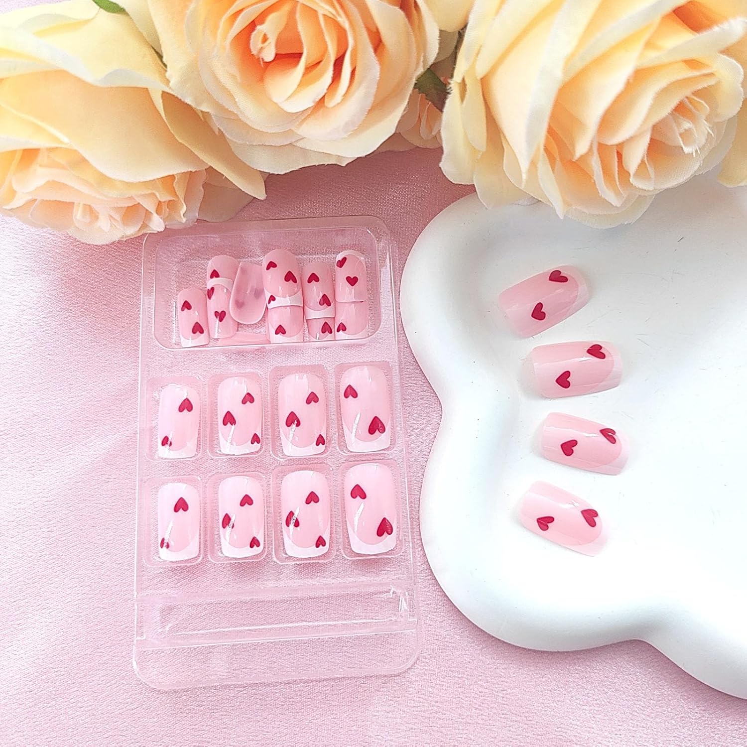 Exquisite Design: Valentine’s day false nails are made of high quality materials, With a heart shaped design, Creating a unique art style for valentines and diy the unique art you want.
