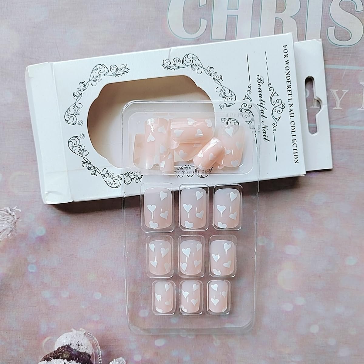 💖【Excellent Quality】White love heart themes, made with high-quality ABS material,not easy to chip or break or fade,strong enough to last for 1-3 weeks if using glue, it is non-toxic for your body and nails, providing a comfortable and fantastic experience for you. If the false nail is not damaged, it can be reused again after removal.