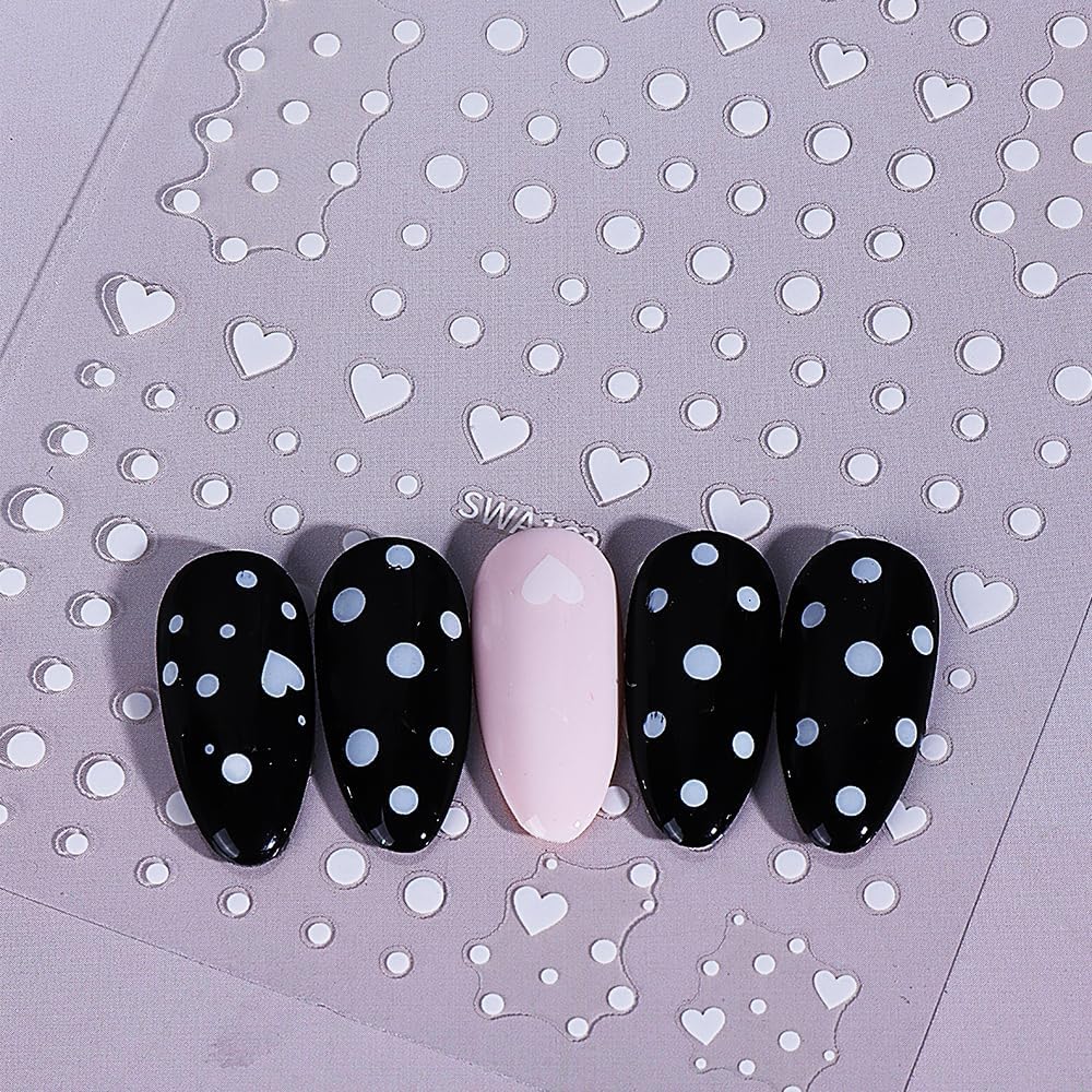 Valentines Nail Stickers Polka Dots Nail Art Stickers with 3D Black White Heart Design Nails Stuff Decoration Stick on Nail Supplies for Women Girls Nail Art Decor DIY Gifts 6 Sheets